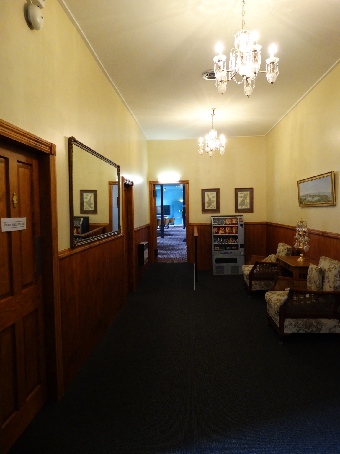 More significant changes came in the 1970s. Until October 21st 1974 the hotel was ”dry” although there had been an unsuccessful attempt to get a liquor licence in the 1880’s. Subsequent owners were teetotal and one of the directors of the Hotel Company said it would be over his dead body that they would sell liquor. It is reputed that he died in October 1974 and the hotel started selling liquor the next day! Also during the 1970’s the adjacent Insurance Office of Australia building was purchased and incorporated into the hotel. This was a distinctly separate building with a different facade on the exterior and remains noticeable by slightly different floor levels inside.