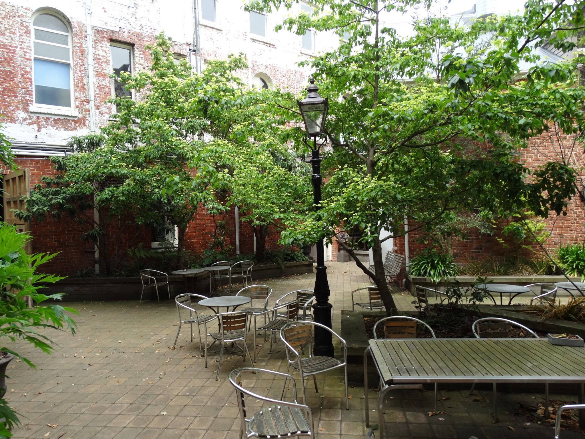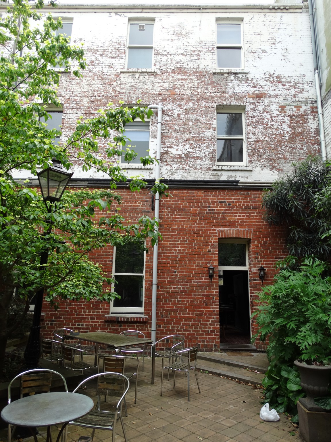 The hotel was originally built around the parameter of a roughly triangular site with an internal courtyard, which held stables. The old stables are still there (now the hotel kitchen) although a laundry and boiler were placed in this area in the 1950s but have since been demolished to recreate a landscaped courtyard.
