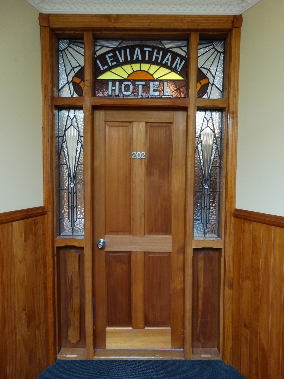 buildingWhen the Leviathan Railway Temperance Hotel was built in 1884 it was situated beside the harbour, beside the original railway station, on land, which had been reclaimed from the harbour, with rock dumped during the flattening of Bell Hill. With 150 bedrooms, the Leviathan was then reputed to be the largest hotel in Australasia. The name Leviathan originates from the book of Revelation in the Bible and is used to describe a huge creature usually of the sea.