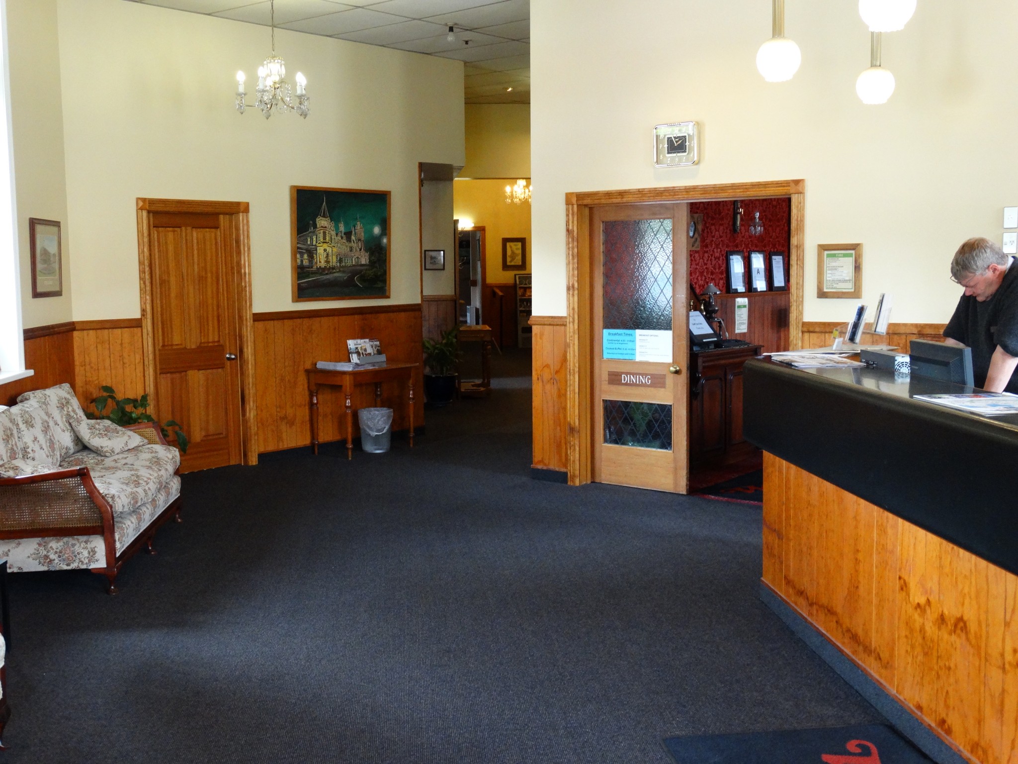 There were big changes in the 1950’s around the time when the Queen came to Dunedin soon after her coronation. The Leviathan Hotel was extensively ”modernised” with most of the original ornate exterior being removed, and the dining room renovated. The 150 rooms were reduced to 75 rooms by making each alternate room into an ensuite.