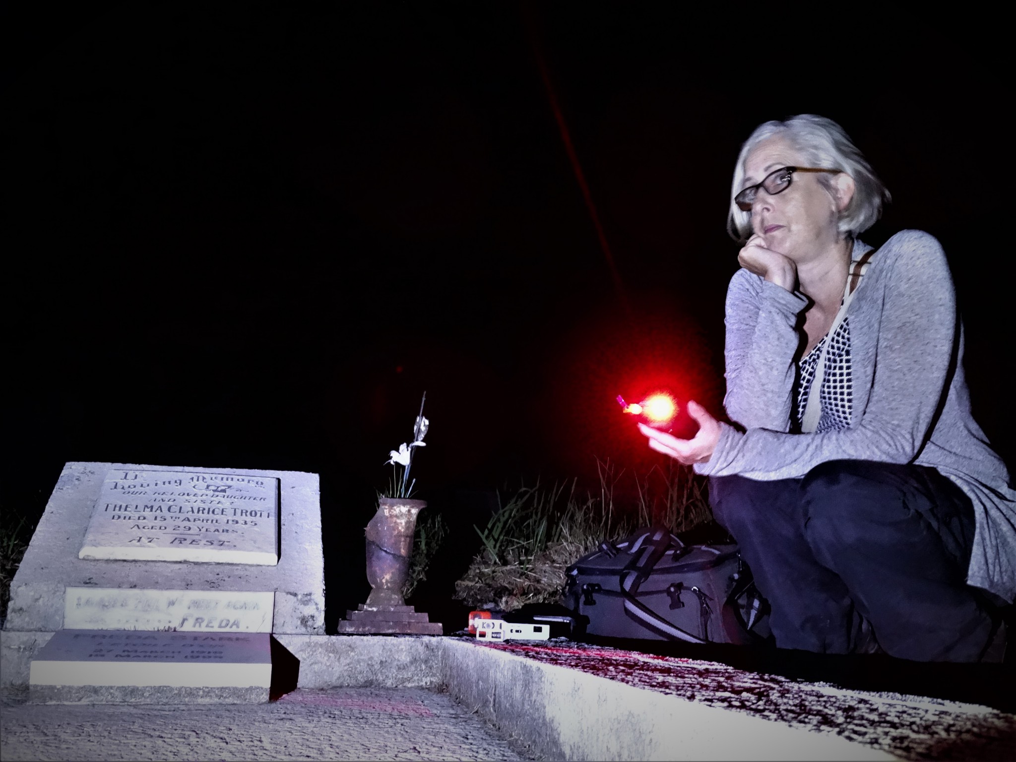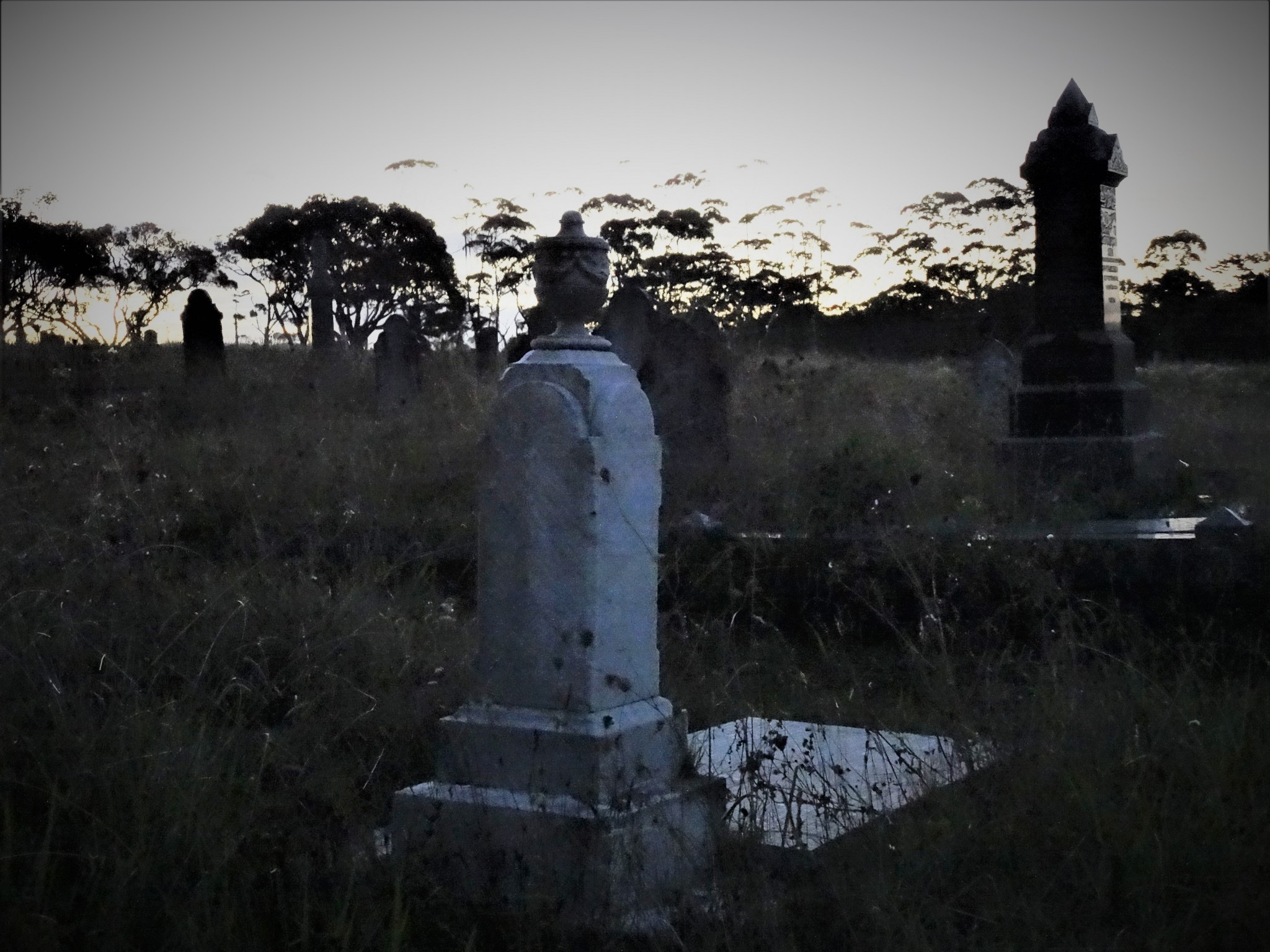 We gained official permission to spend time in the cemetery after hours. This is a rare privilege that we are grateful for; many thanks to Waikumete Cemetery management. Also a big thank you to John and Ruth , from the Friends of Waikumete, for coming along with us and showing us some of graves. Your knowledge on the area and those buried in it, is remarkable!