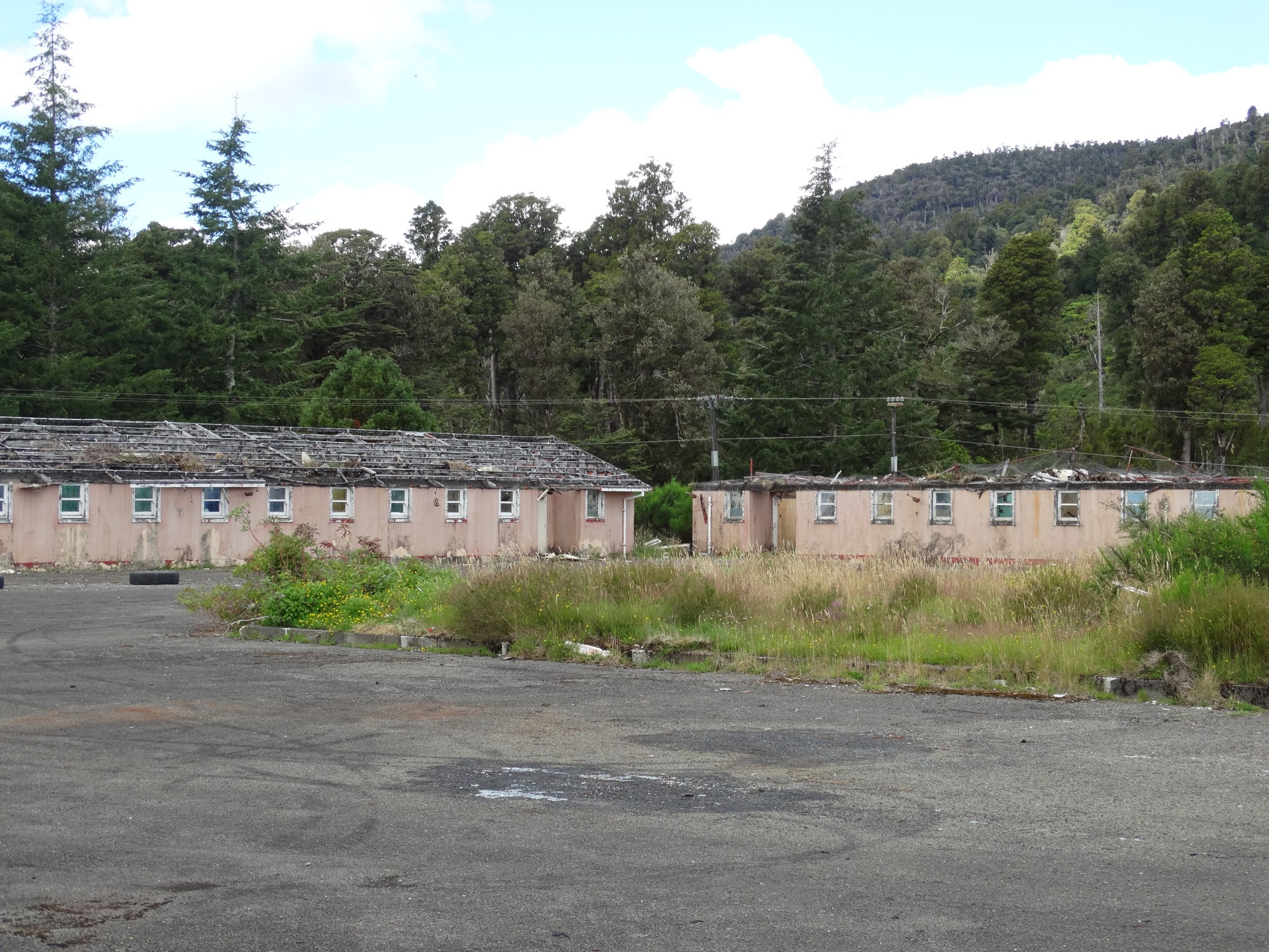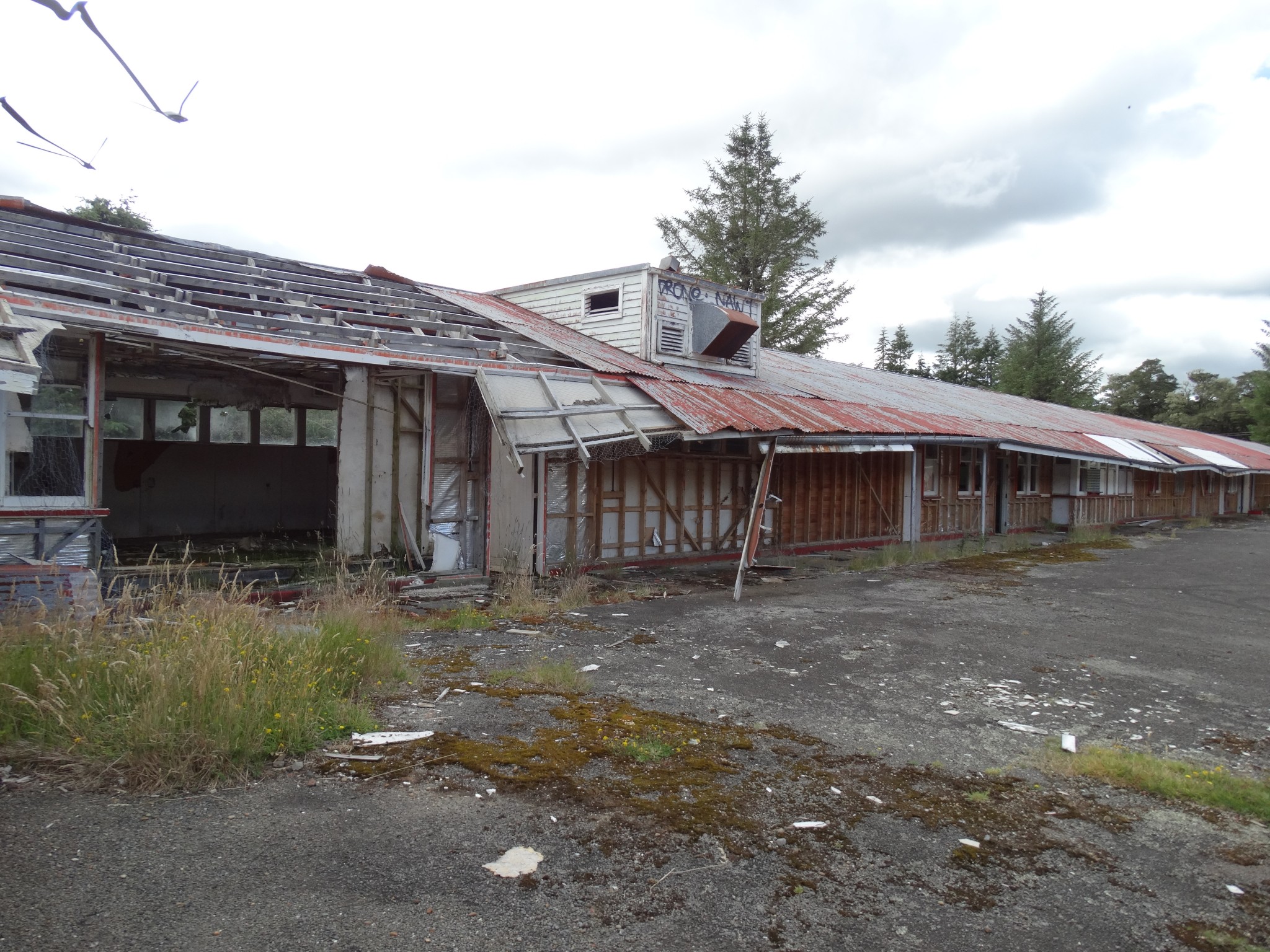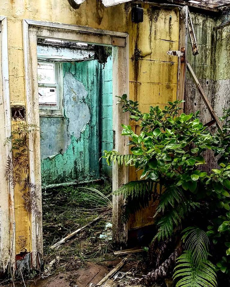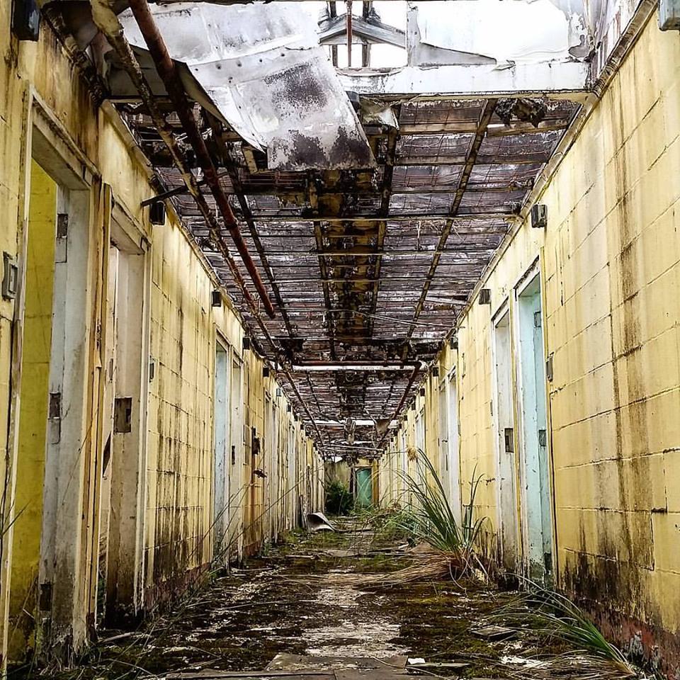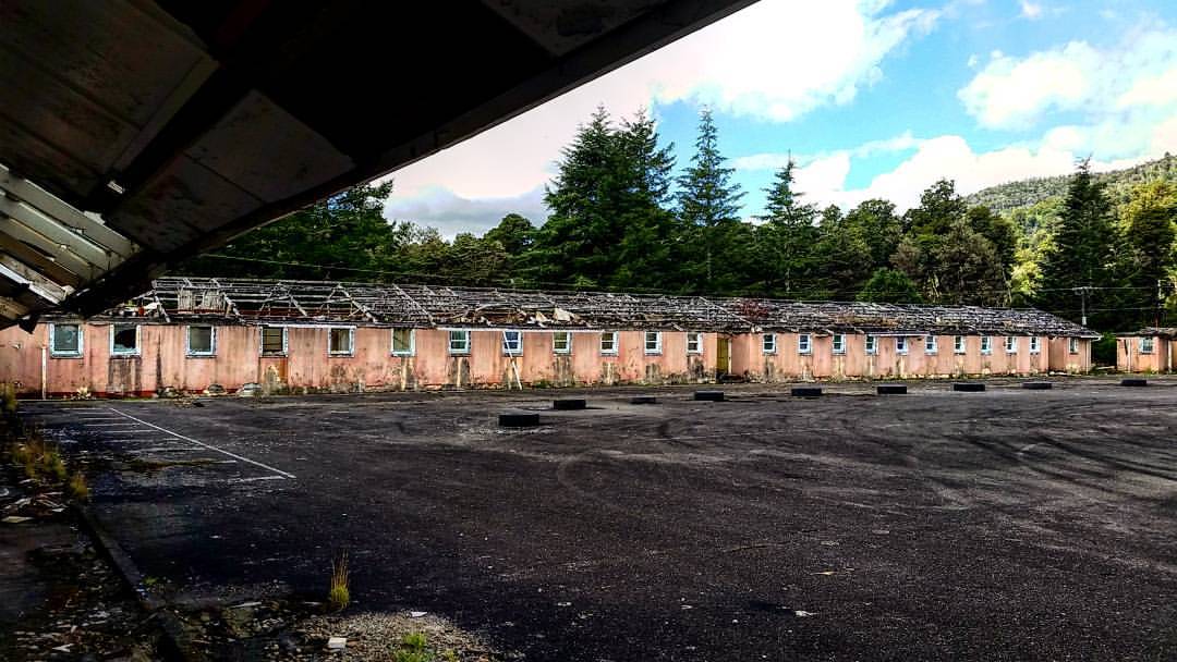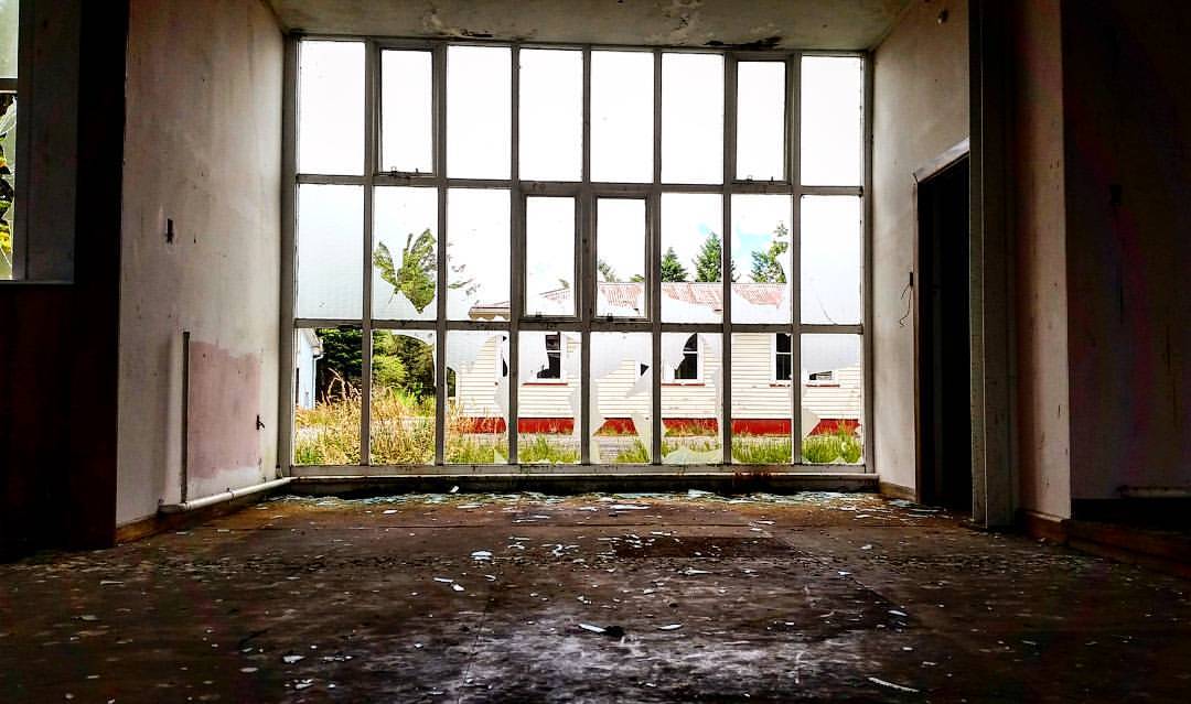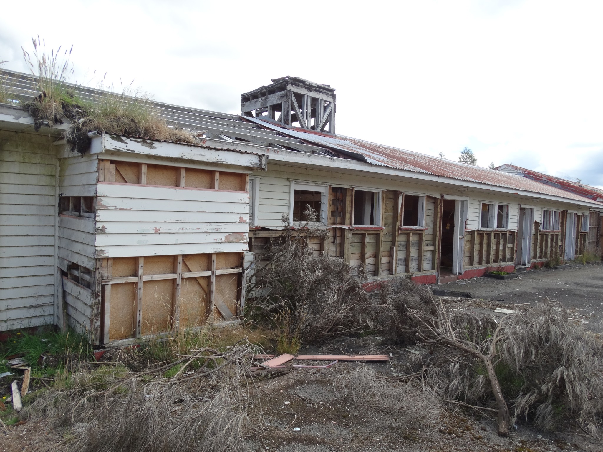 Waikune Prison was minimum security prison opened in 1921. It sits, isolated and alone, on a deserted and overgrown few acres, along a lonely strip of highway, and has been left abandoned and in decay since 1986. This derelict prison camp located in a remote area below a looming Mt Ruapehu, was closed due to lack of funding to upgrade. The inmates worked in various capacities, including doing the laundry for the nearby Grand Chateau Hotel, a ski resort in a World Heritage Park.