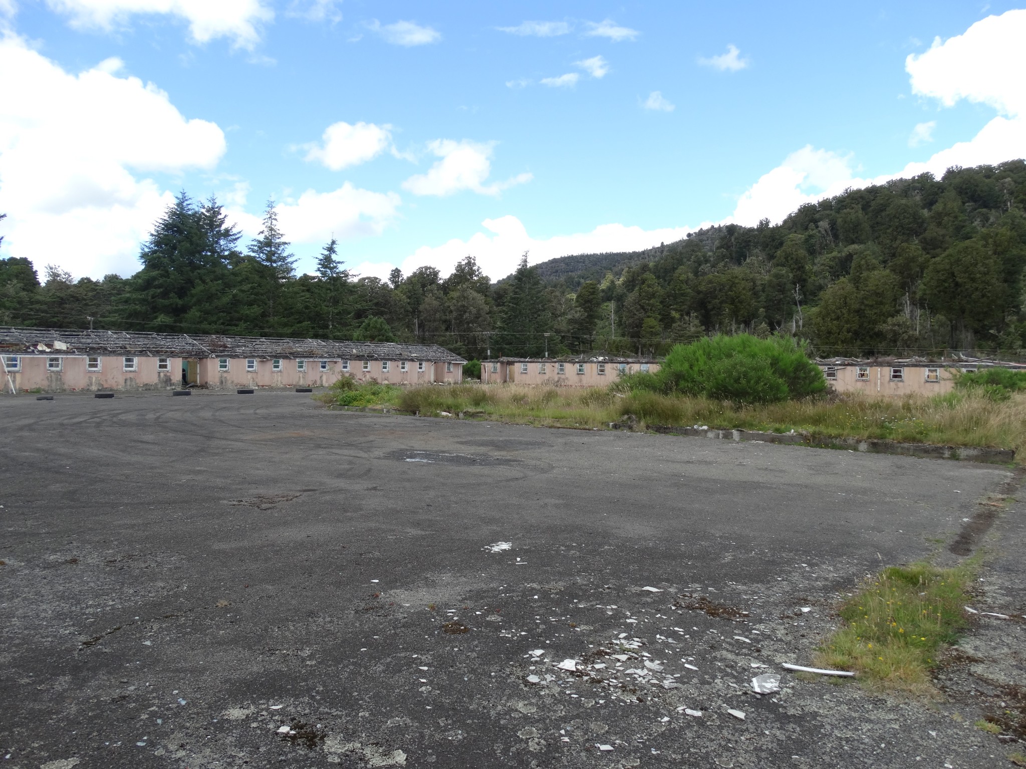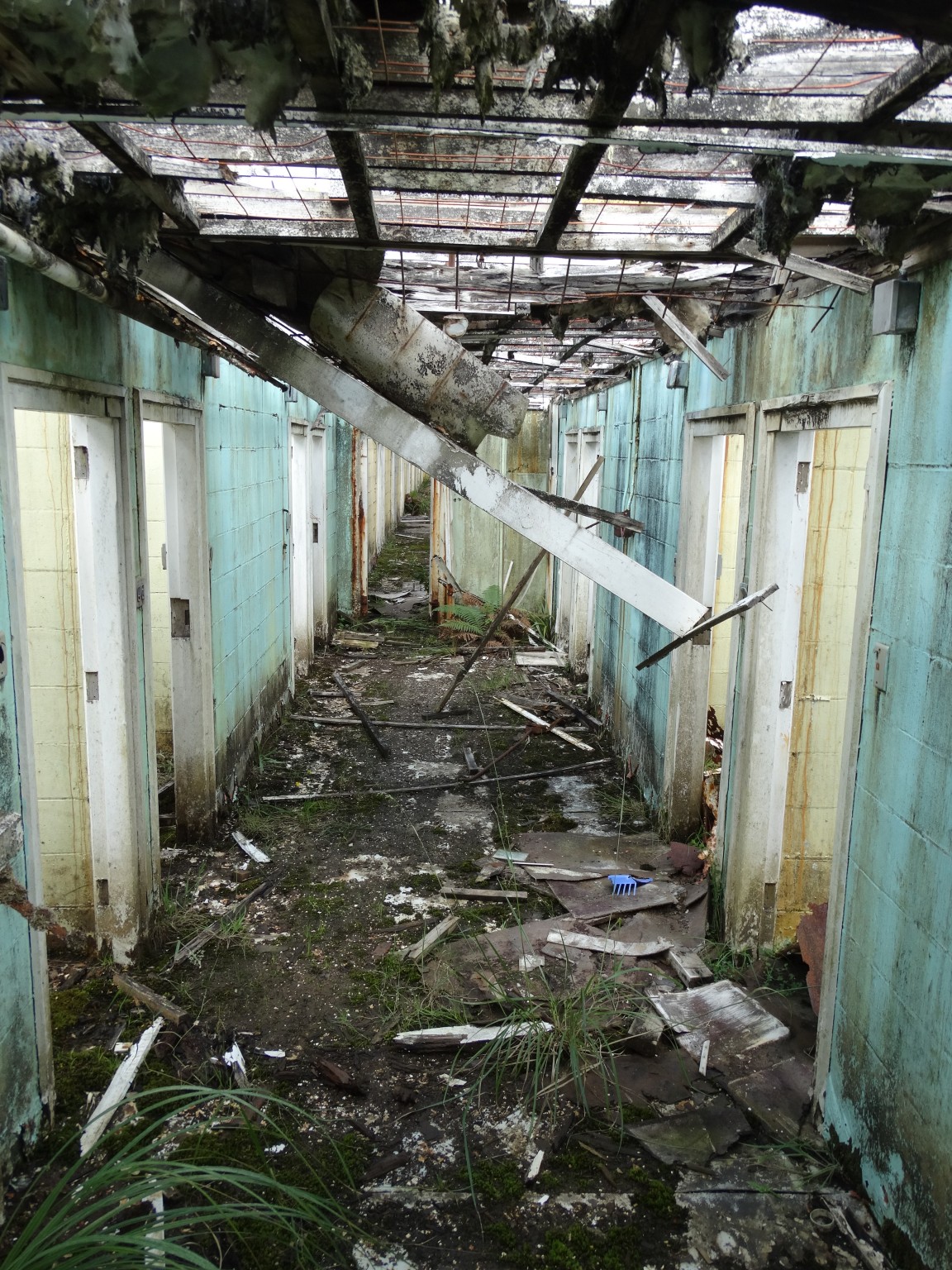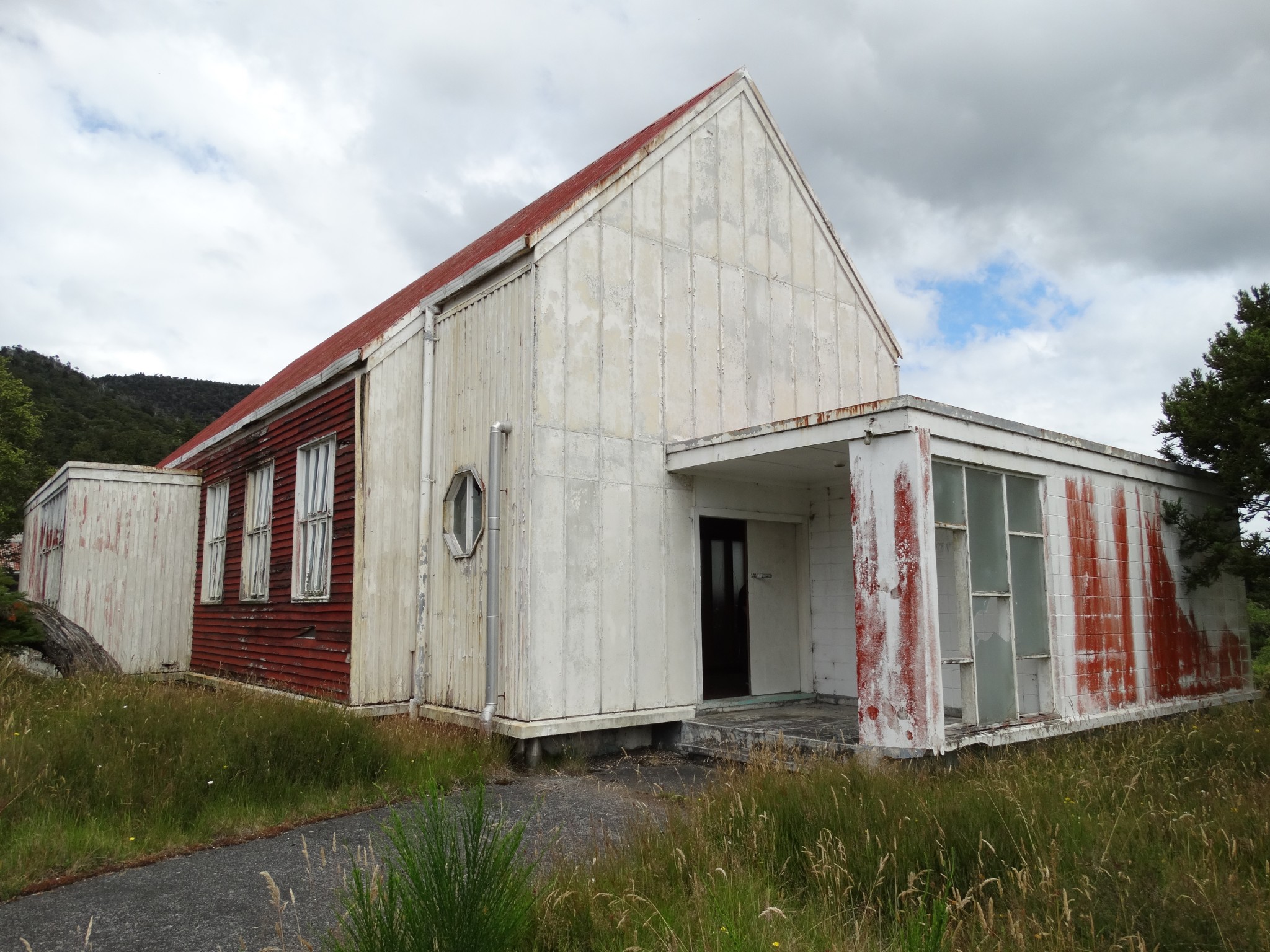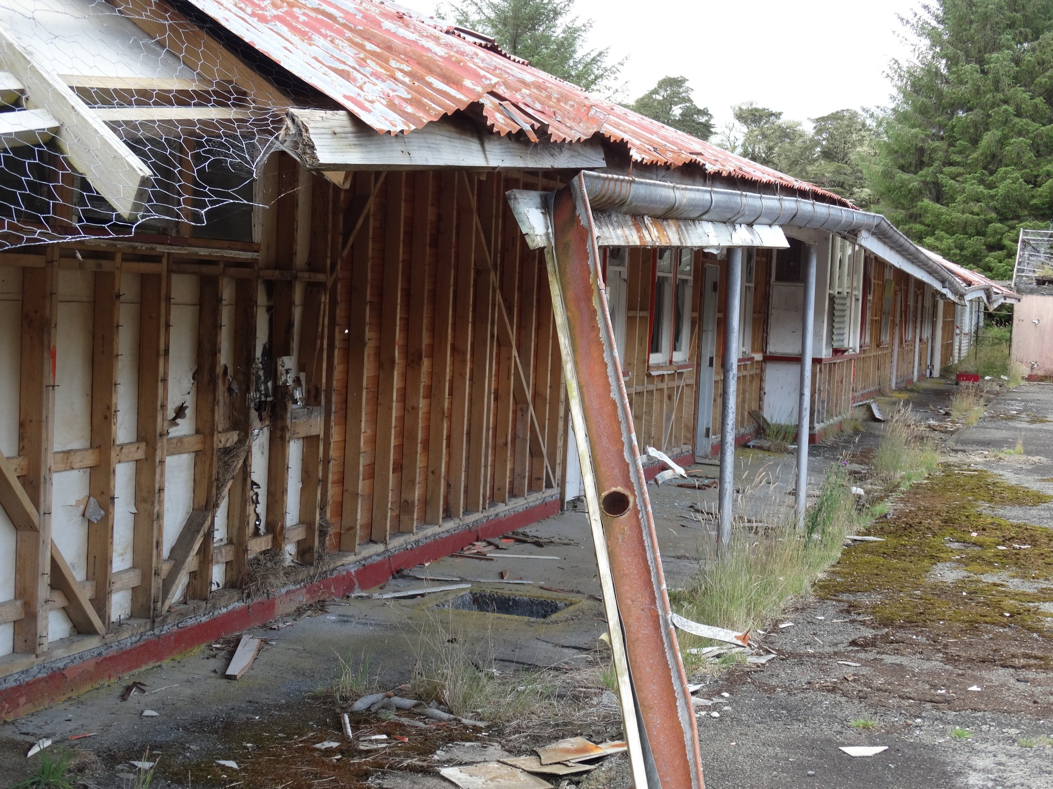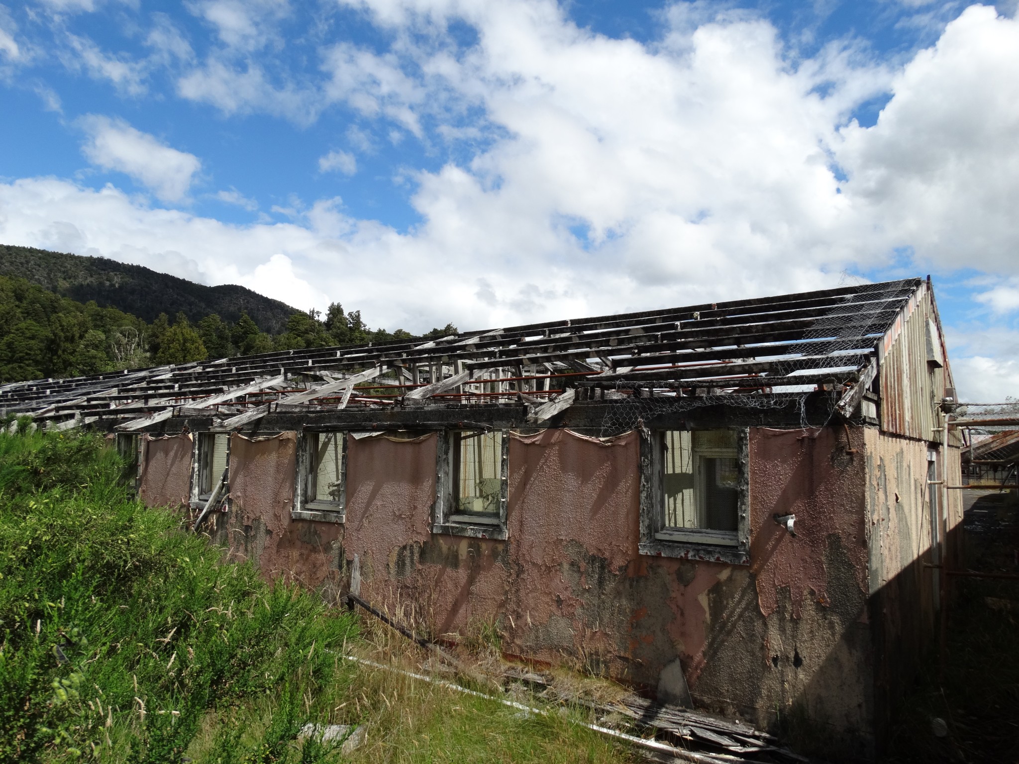 Waikune Prison was minimum security prison opened in 1921. It sits, isolated and alone, on a deserted and overgrown few acres, along a lonely strip of highway, and has been left abandoned and in decay since 1986. This derelict prison camp located in a remote area below a looming Mt Ruapehu, was closed due to lack of funding to upgrade. The inmates worked in various capacities, including doing the laundry for the nearby Grand Chateau Hotel, a ski resort in a World Heritage Park.