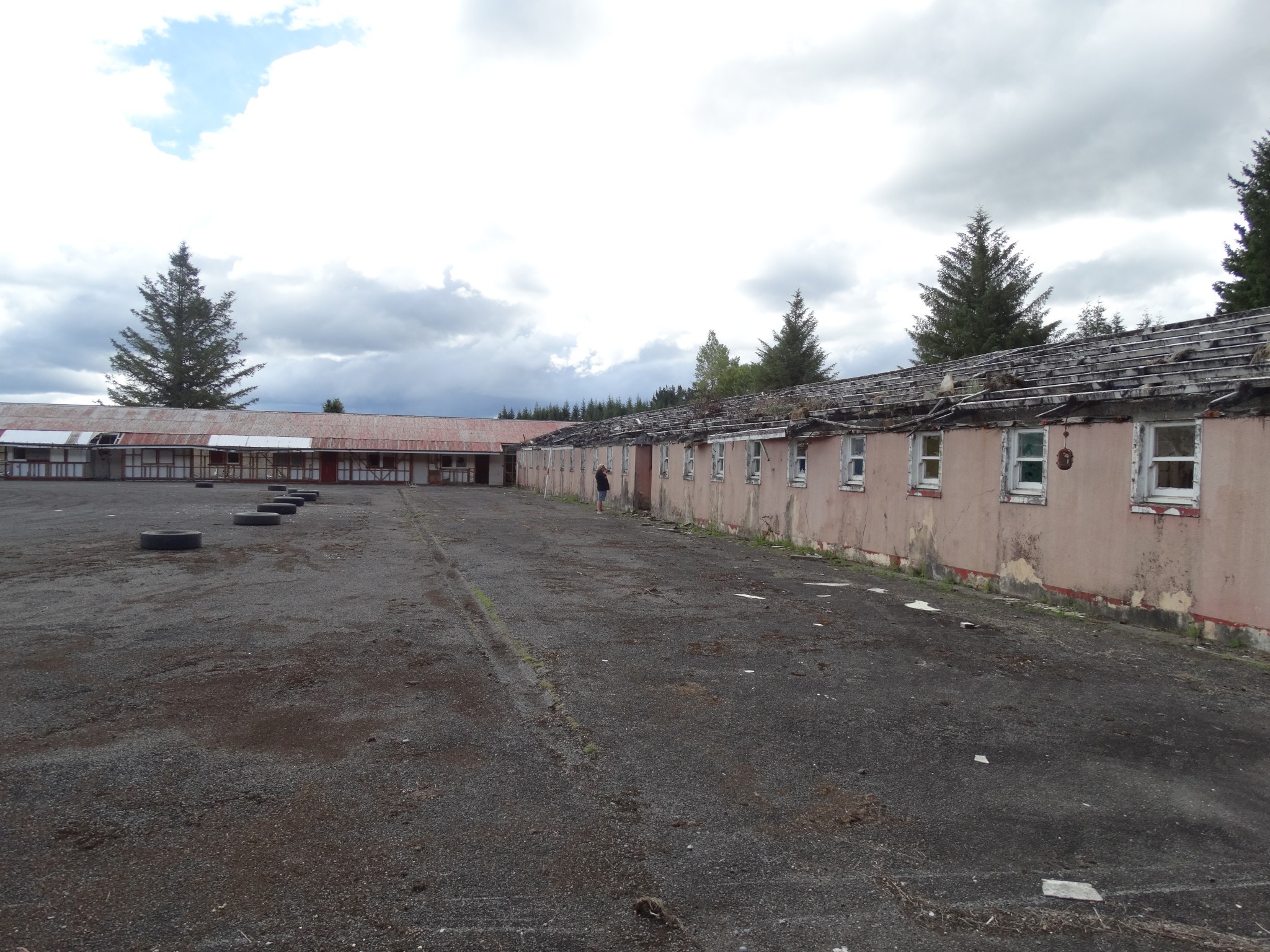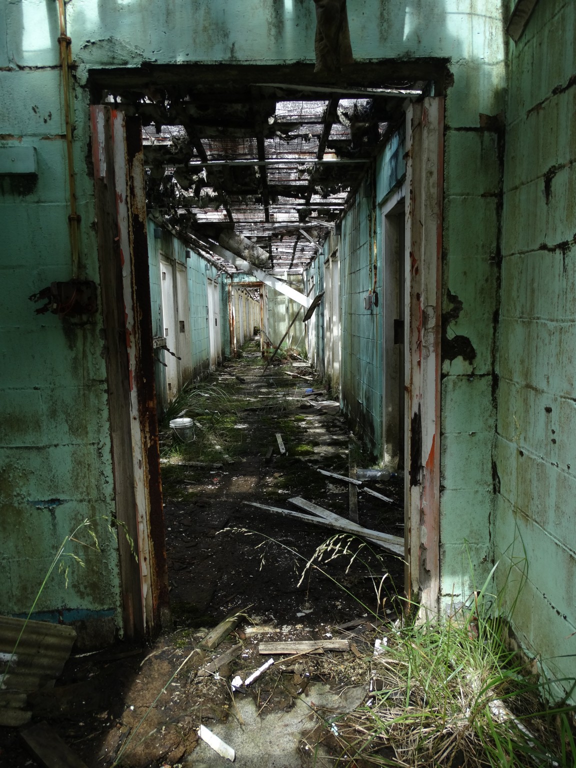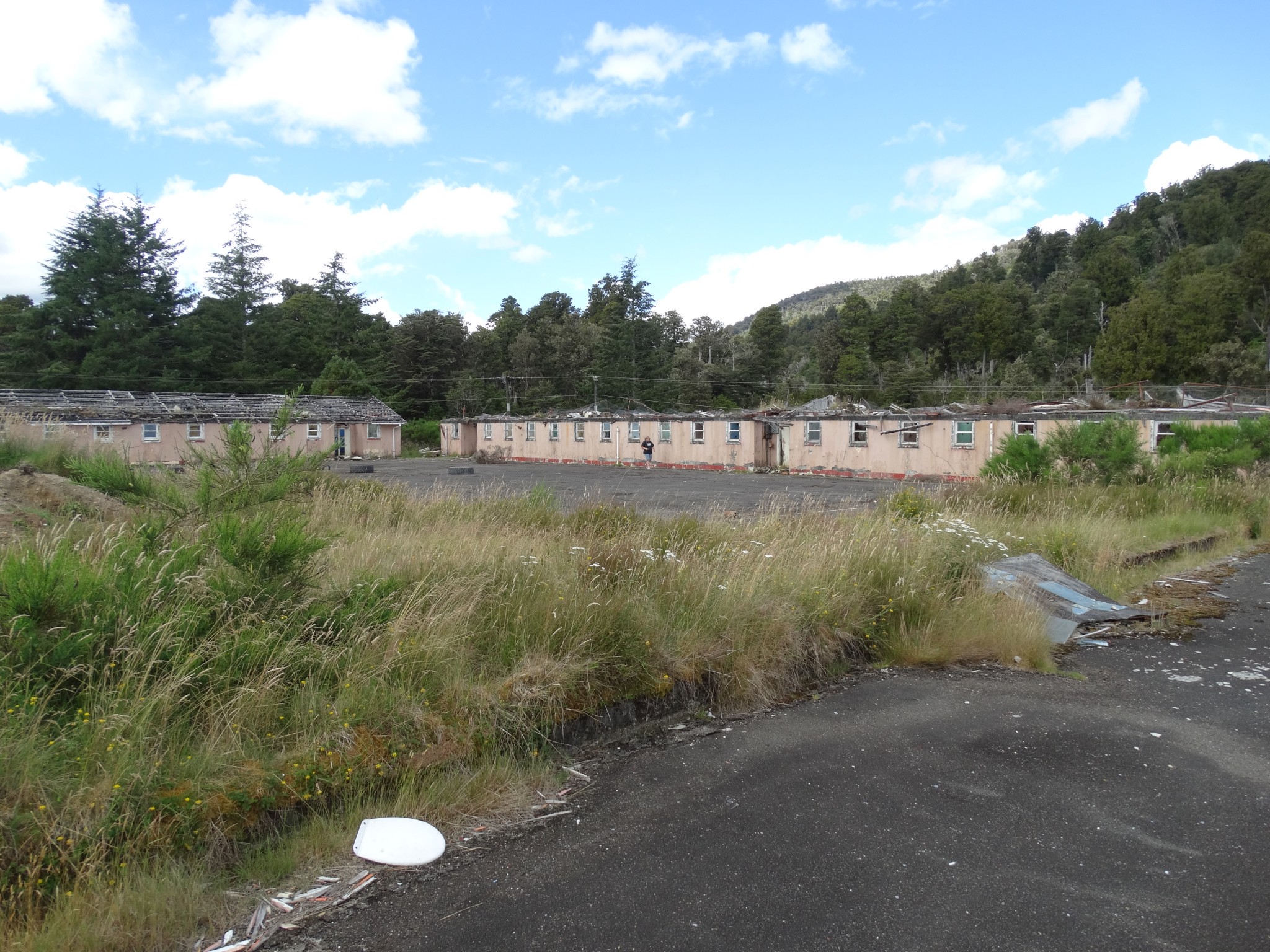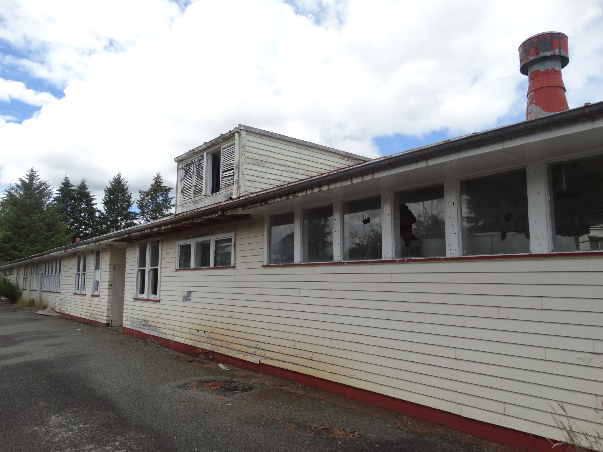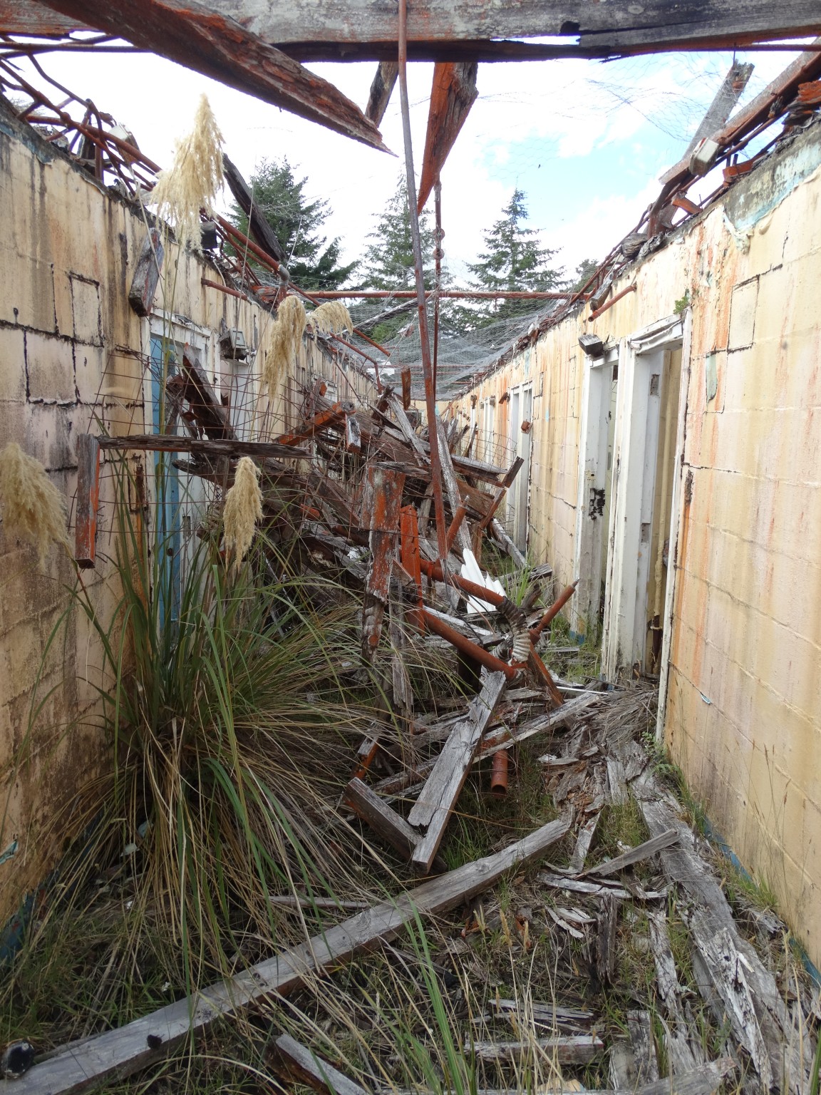 Waikune Prison was minimum security prison opened in 1921. It sits, isolated and alone, on a deserted and overgrown few acres, along a lonely strip of highway, and has been left abandoned and in decay since 1986. This derelict prison camp located in a remote area below a looming Mt Ruapehu, was closed due to lack of funding to upgrade. The inmates worked in various capacities, including doing the laundry for the nearby Grand Chateau Hotel, a ski resort in a World Heritage Park.