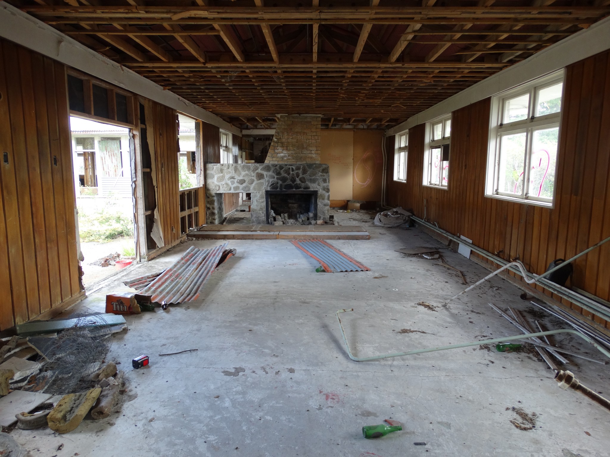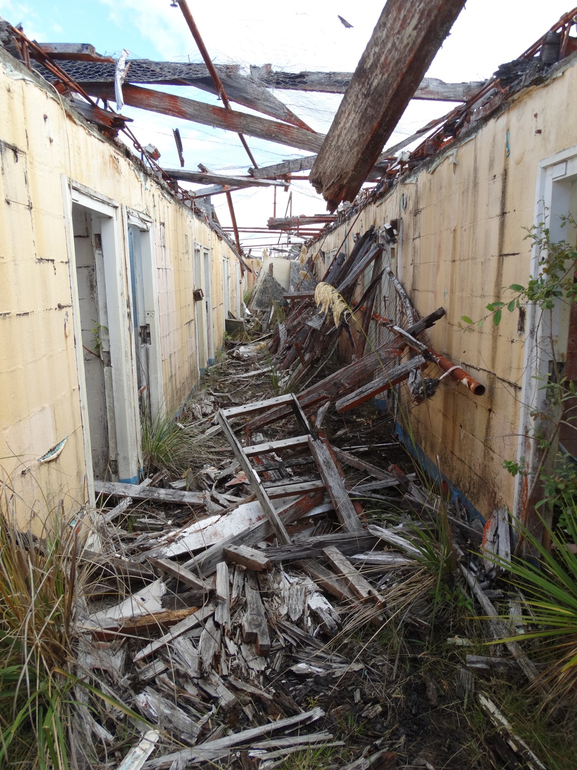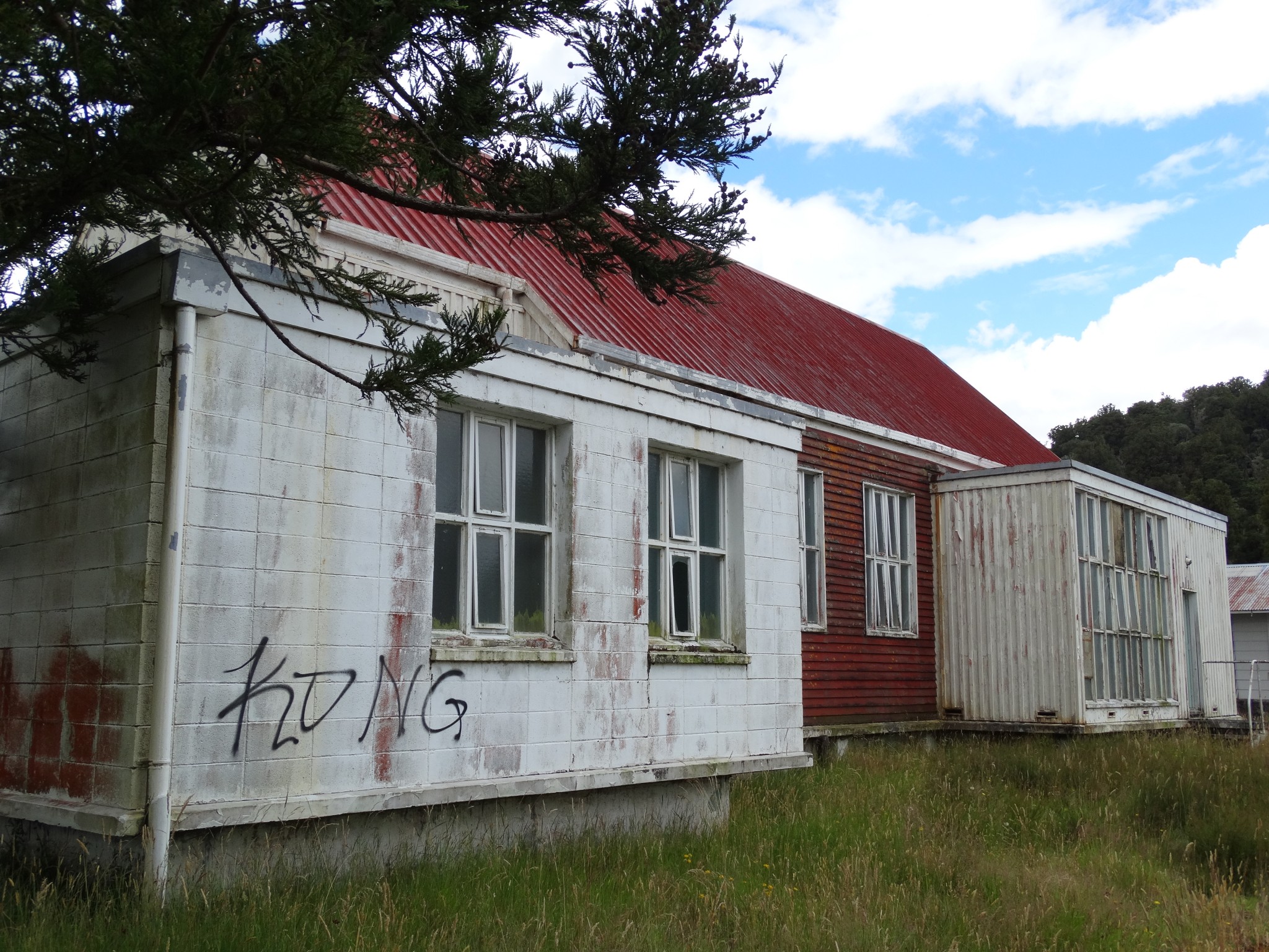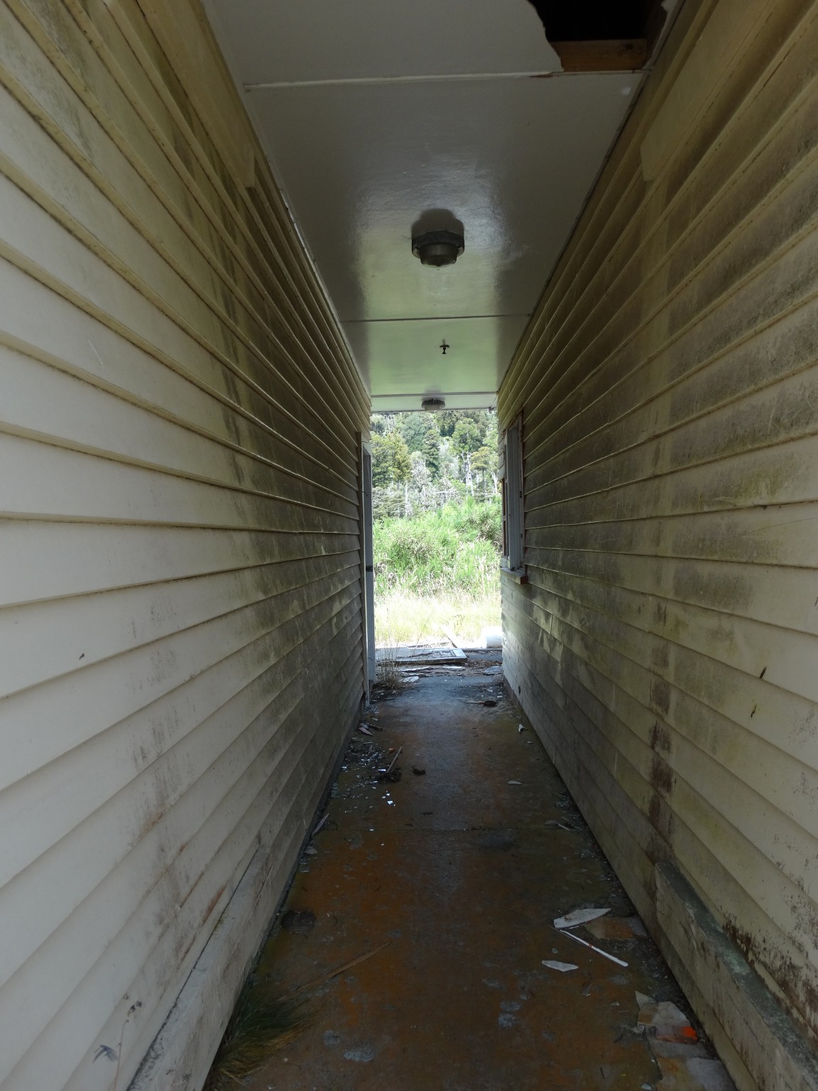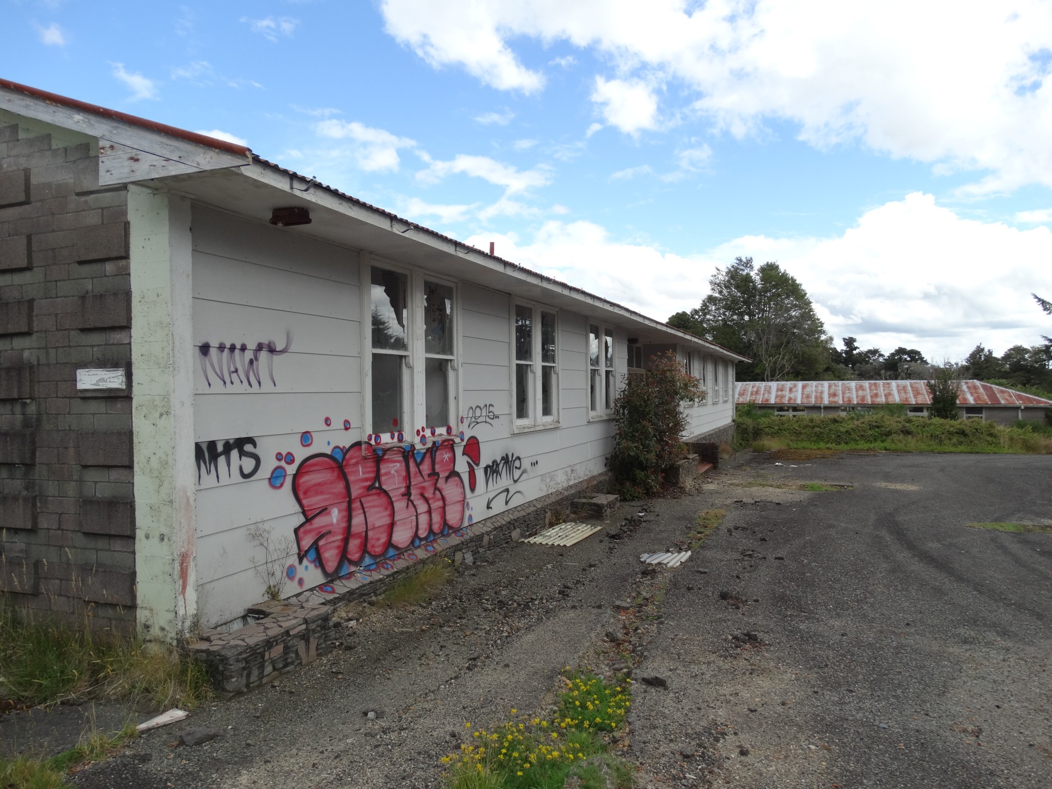 Waikune Prison was minimum security prison opened in 1921. It sits, isolated and alone, on a deserted and overgrown few acres, along a lonely strip of highway, and has been left abandoned and in decay since 1986. This derelict prison camp located in a remote area below a looming Mt Ruapehu, was closed due to lack of funding to upgrade. The inmates worked in various capacities, including doing the laundry for the nearby Grand Chateau Hotel, a ski resort in a World Heritage Park.