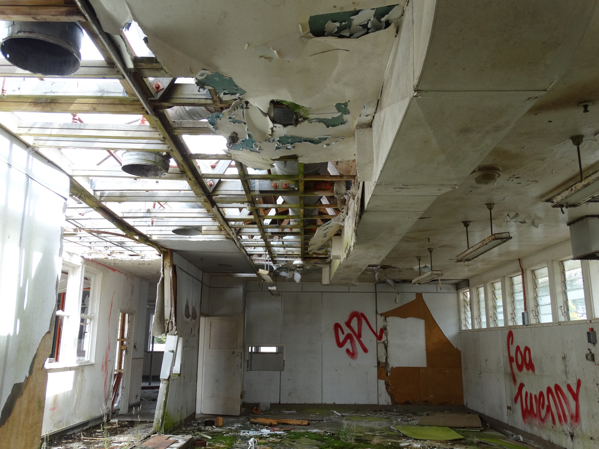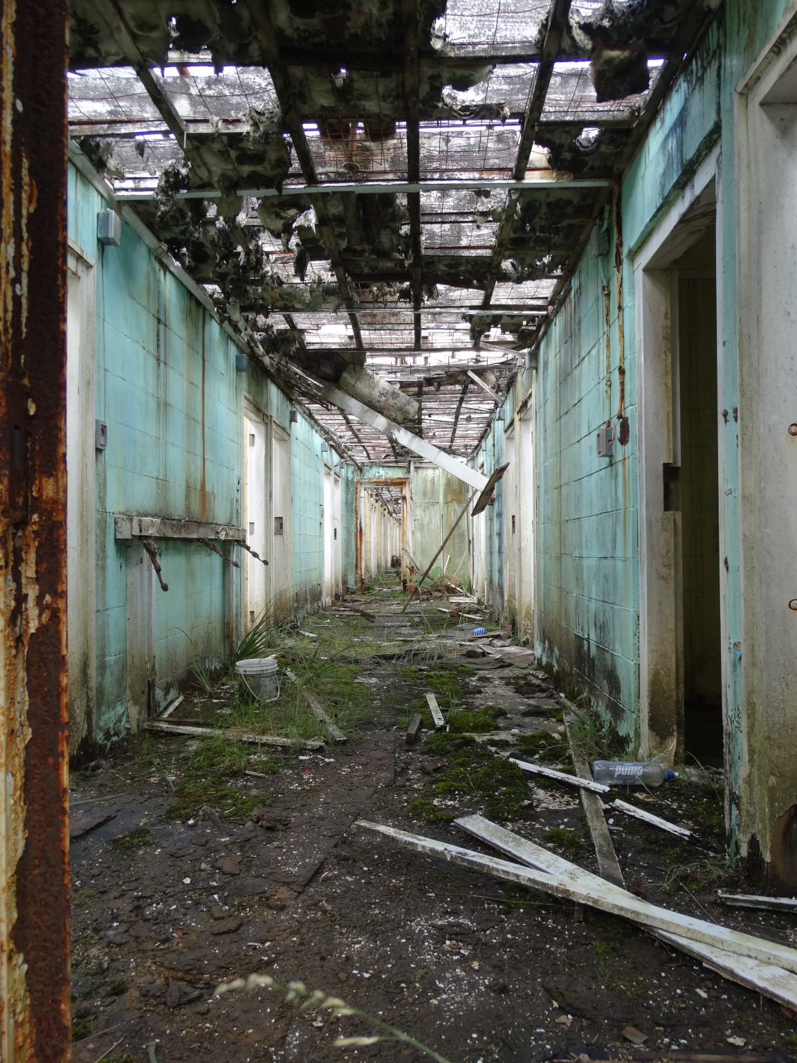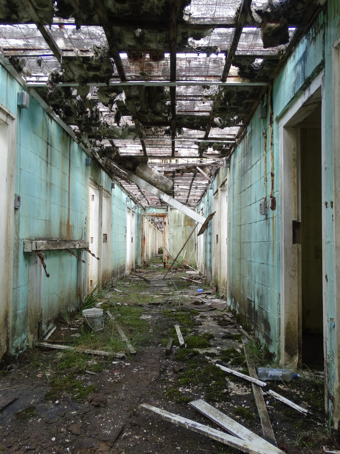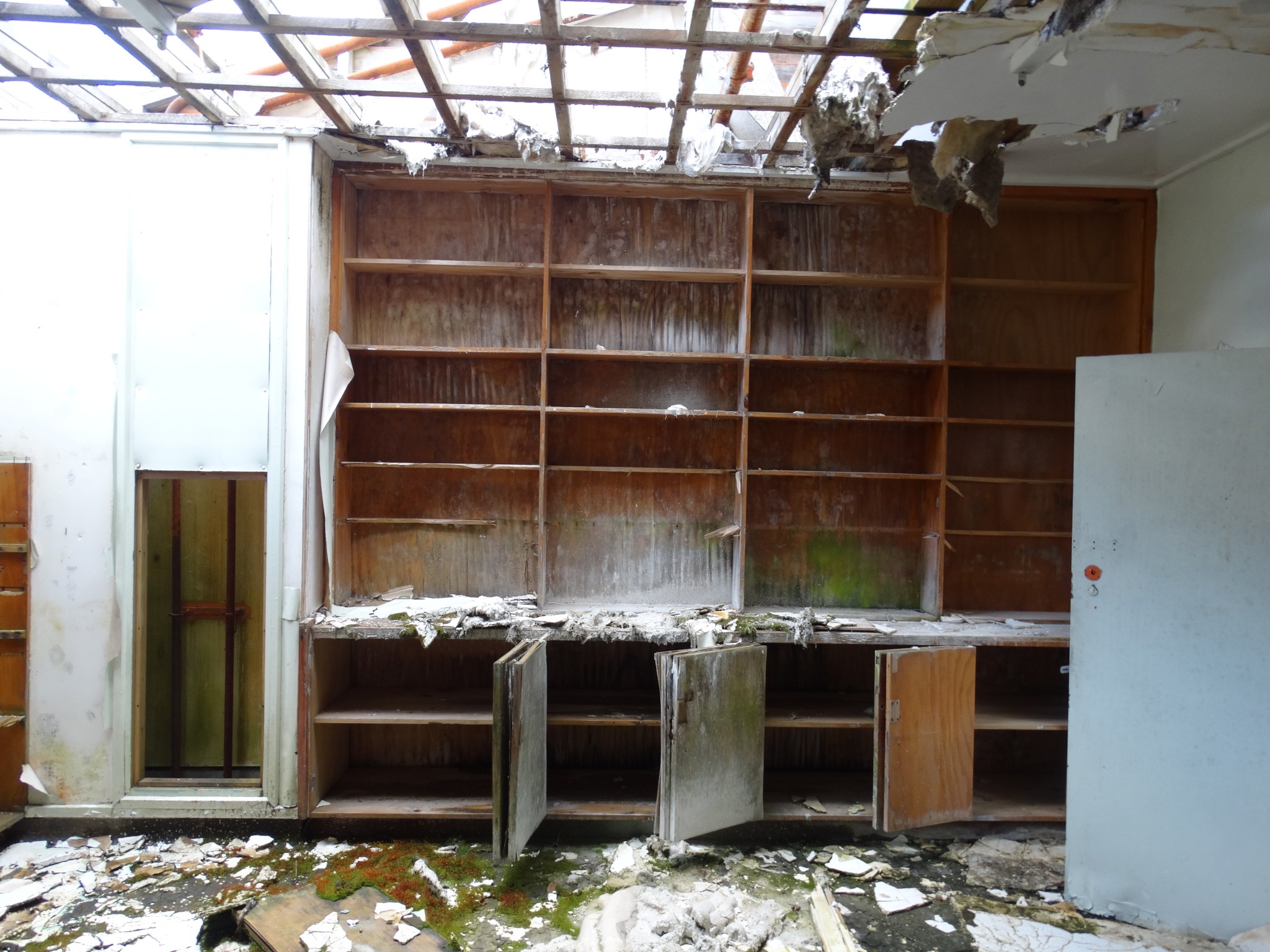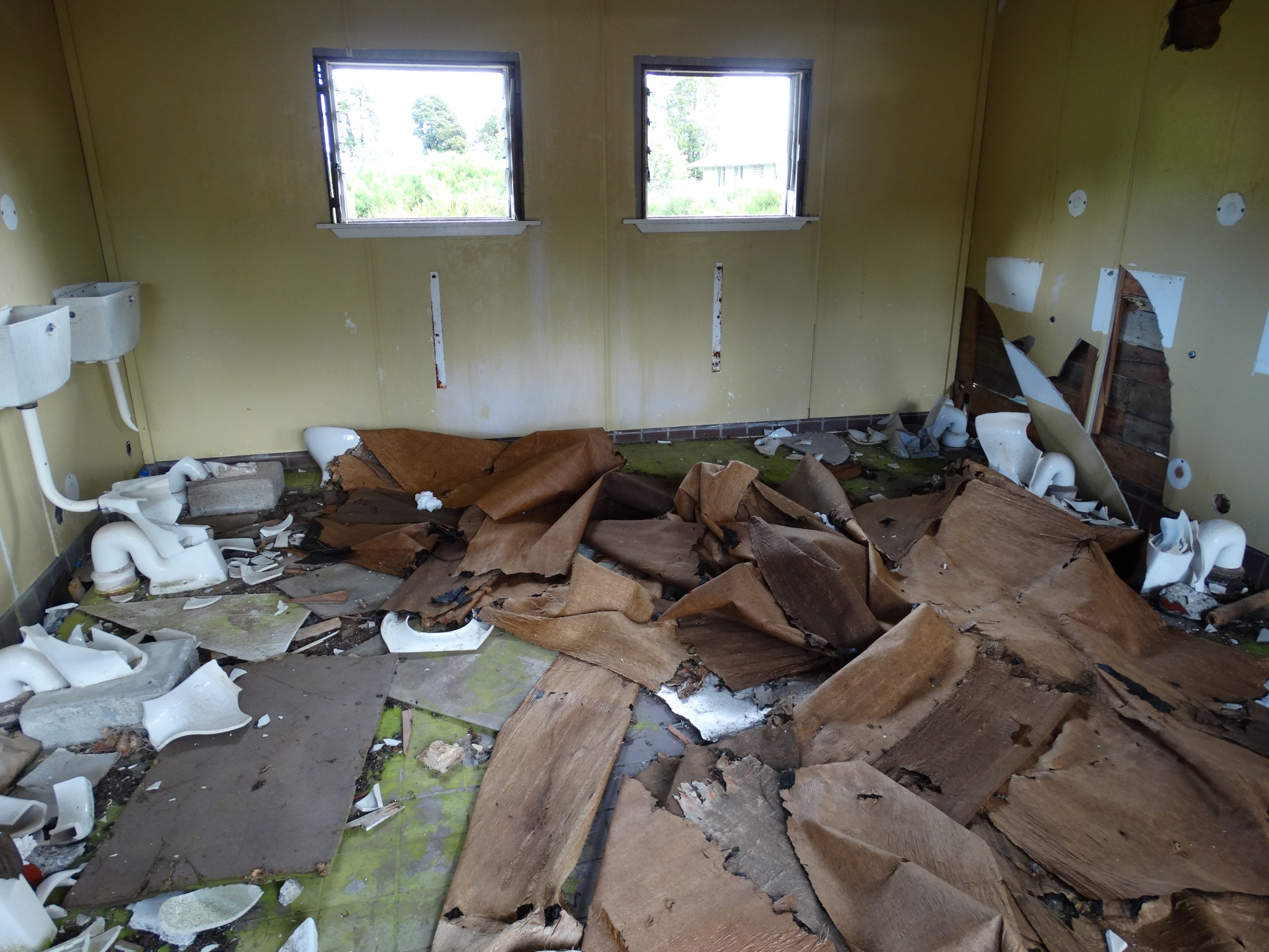 Waikune Prison was minimum security prison opened in 1921. It sits, isolated and alone, on a deserted and overgrown few acres, along a lonely strip of highway, and has been left abandoned and in decay since 1986. This derelict prison camp located in a remote area below a looming Mt Ruapehu, was closed due to lack of funding to upgrade. The inmates worked in various capacities, including doing the laundry for the nearby Grand Chateau Hotel, a ski resort in a World Heritage Park.
