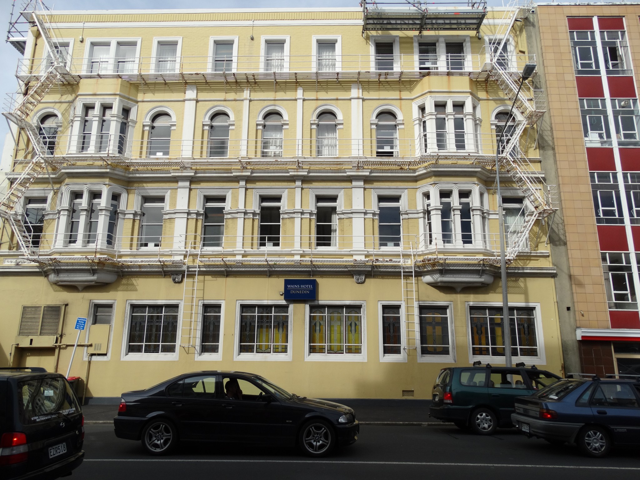 The Wains Hotel Building (frequently spelt grammatically but incorrectly as Wain’s Hotel) is a historic hotel building in Dunedin, New Zealand. It is currently occupied by the Park Regis Dunedin hotel.