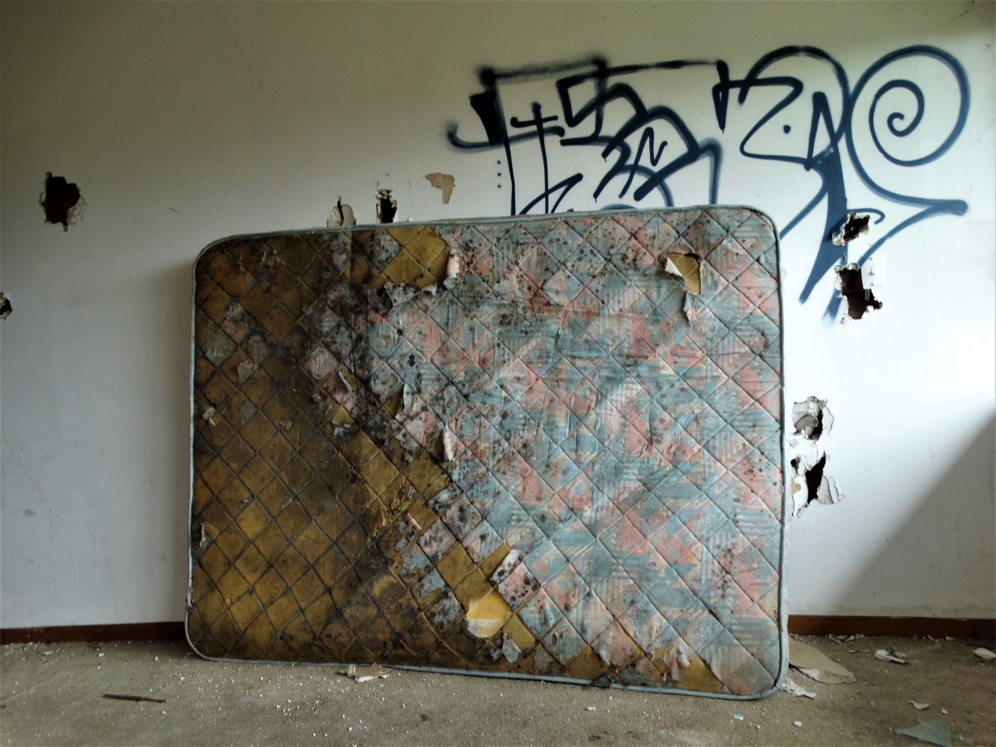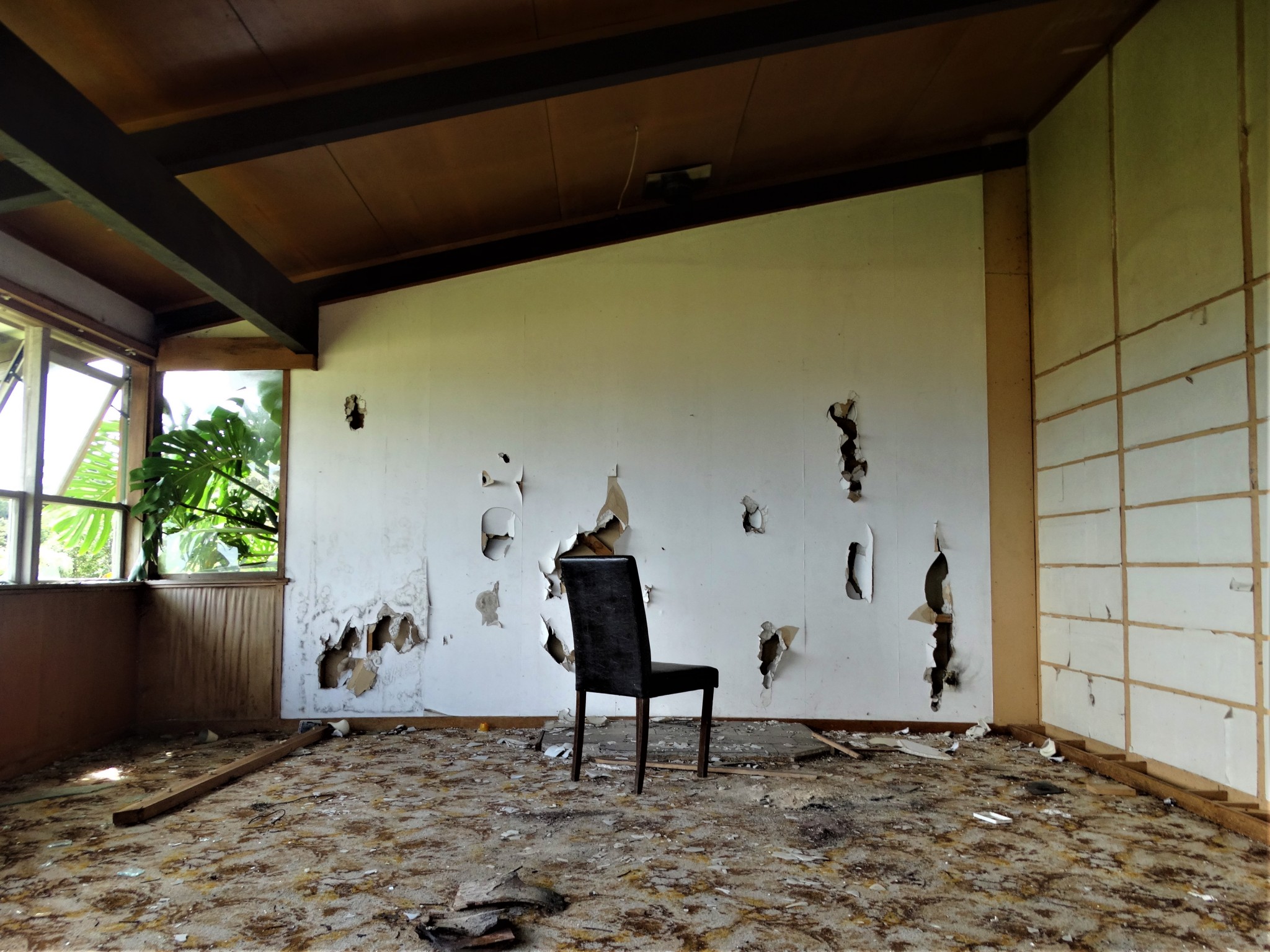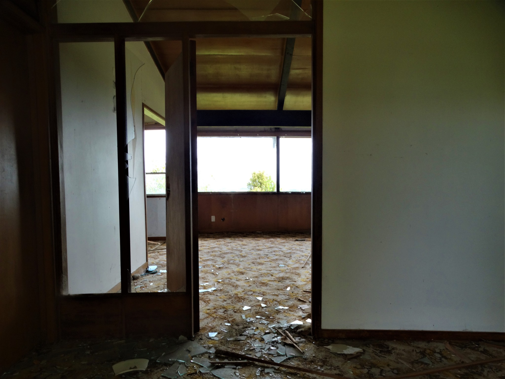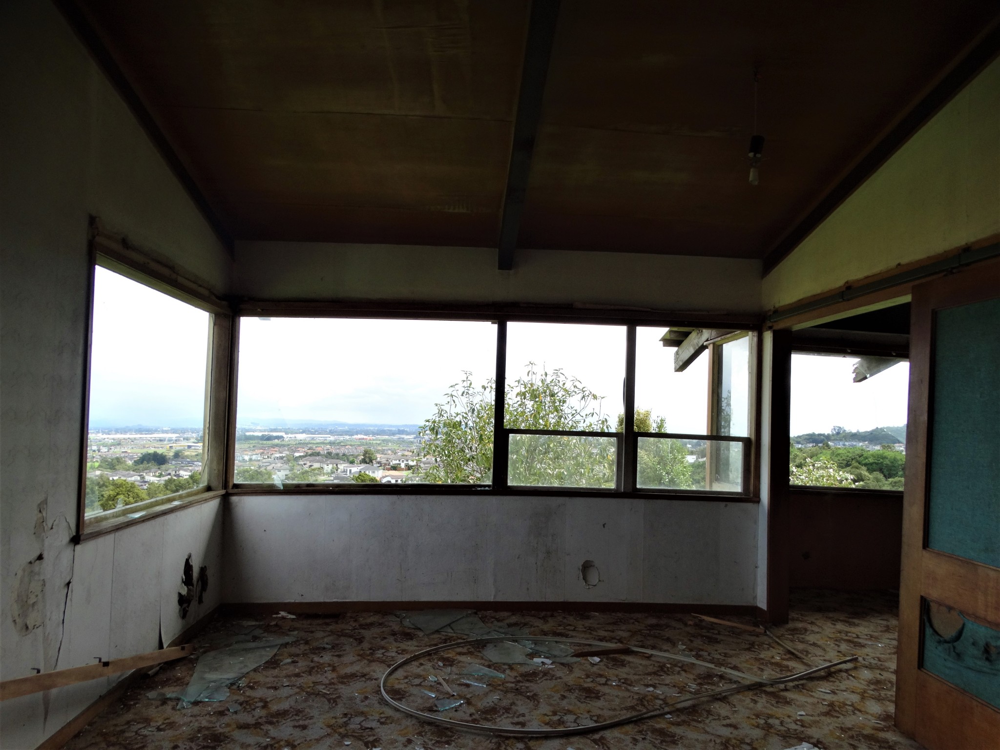 This family home with a stunning hilltop view is one of a few in the area bought up by developers and soon to be bulldozed and replaced with ugly new suburban boxes to house the ever increasing population. It currently stands sad, lonely and derelict. A shell of its former self. Used only by the locals, as a dumping ground.